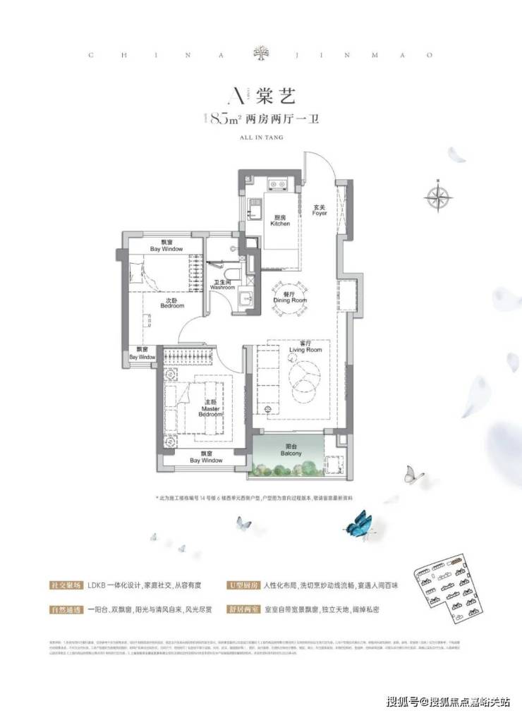 建面约85㎡2房2厅1卫 ,做到了 双开间朝南+3个飘窗+LDKB一体化设计 ,附加空间非常多。