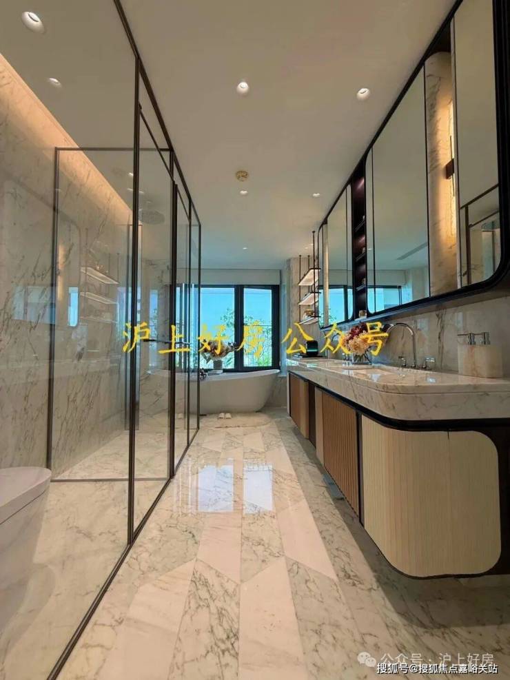 例如宝格丽大理石打造的西厨岛台、铂浪高的净水三合一水龙头和一体式大水槽、霍尼韦尔的前置过滤器、全屋软水以及末端净水器系统、来自意大利的燃气热水器品牌法罗力、德国唯宝卫浴、当代龙头及花洒等等顶豪超配精装皆在眼前!甚至还有全屋华为智能家居系统配置,奢华配置质感十足!