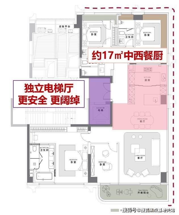 仪式感:该户型纵享一梯一户,独立电梯厅的配置,让归家更安全、空间更阔绰!