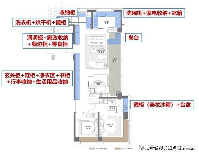 超大容量收纳:类一梯一户设计,全场景收纳,主卫镜柜藏美妆冰箱、厨房有转角拉篮、小家电区、入户柜收纳等等,这些一起解决了家庭的大部分收纳问题。