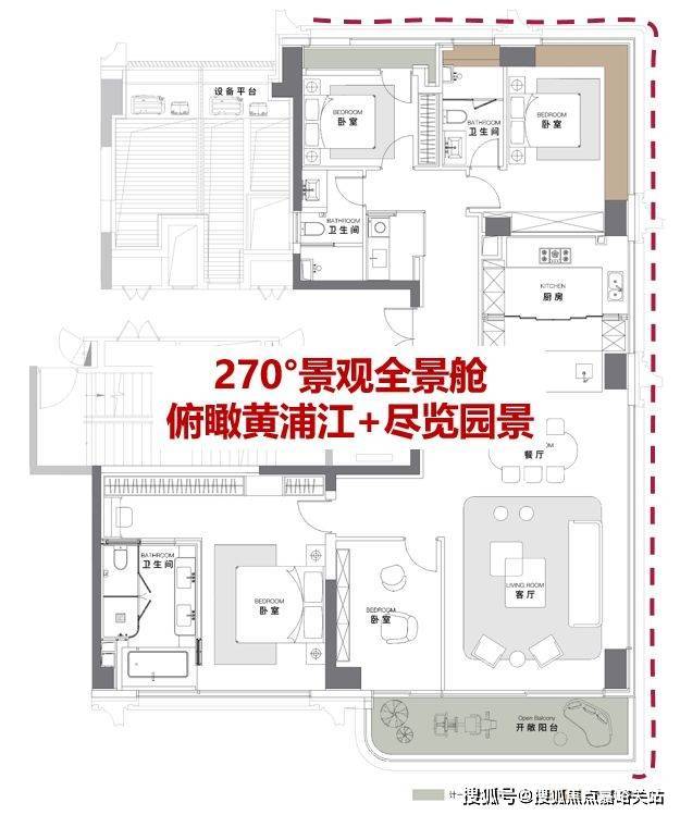 视野:全上海唯一拥有60平米的S湾私人会客厅,仅用5根外置支撑270°超级无界平层结构。