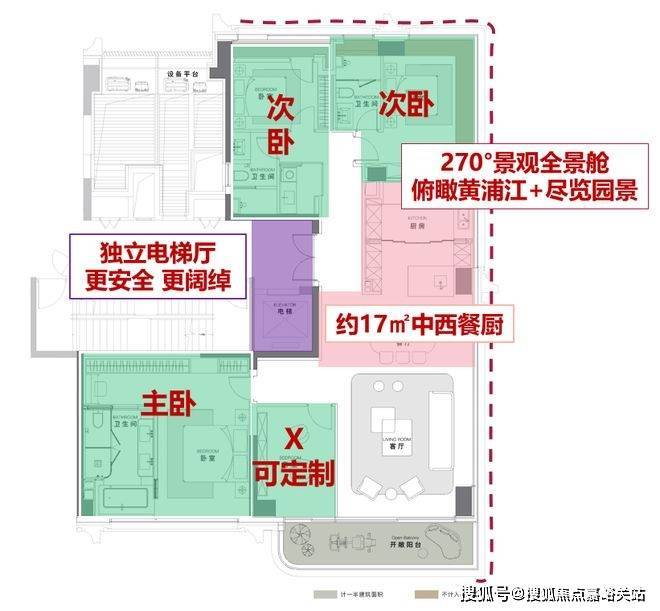 定制化:三卧室+X空间设计,主卧套房堪称家中的“小家”,临窗独立浴缸可尽享江景;