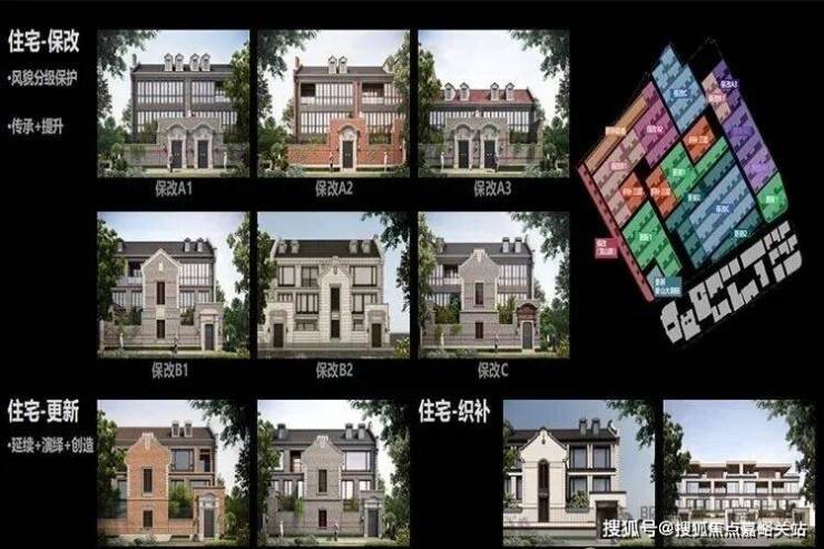 妥善留存更新原有不同风格建筑,通过 保护修缮、保留改造、更新改建、织补新建四大更新手法,让各个时代建筑和谐共存。