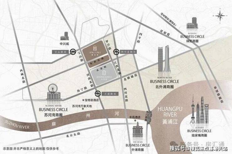 3公里范围内,汇聚苏河湾万象天地、北外滩商圈、瑞虹商圈、南京西路商圈、外滩商圈、陆家嘴商圈等,东南侧步行可达18街坊,西南侧在建安康苑、湾上综合体地块。