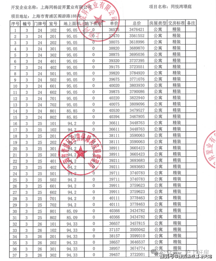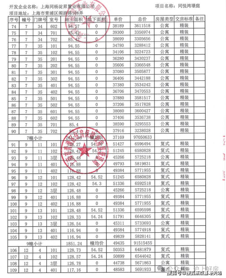 附全套一房一价表: