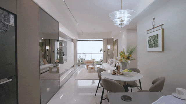 大尺度的宽厅设计,结合南侧半封闭的阳台,无论是视觉,还是尺度,整体空间利用率非常高。