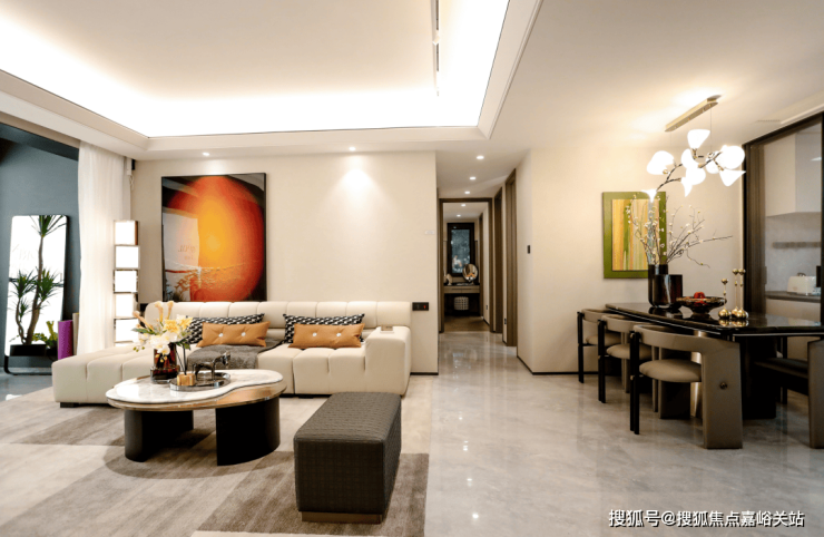 客厅上方的吊顶,全部经过细节化处理,让整体空间更具美和质感。
