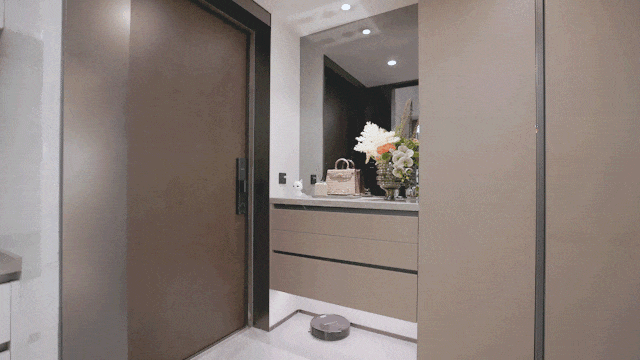 值得一提的是,玄关柜也做了许多隐藏的小细节处理,如:嵌入式鞋柜精灵,不仅可以灭菌,还可以除味;贴心的为女主人设计了长筒靴位、以及不多见的折叠雨伞收纳区;玄关柜下方预留了空间以及电源,方便安装扫地机器人……