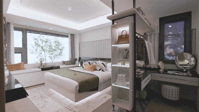一是所有边套户型预留的衣帽间部分,都设计了侧窗,不仅增强了采光与通风,也可以根据自身的生活需求装扮设计。