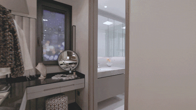 二是所有主卫的镜柜内都设计了美妆冰箱,不仅可以更好地贮藏名贵化妆品,而且也是最合理的化妆动线设计。