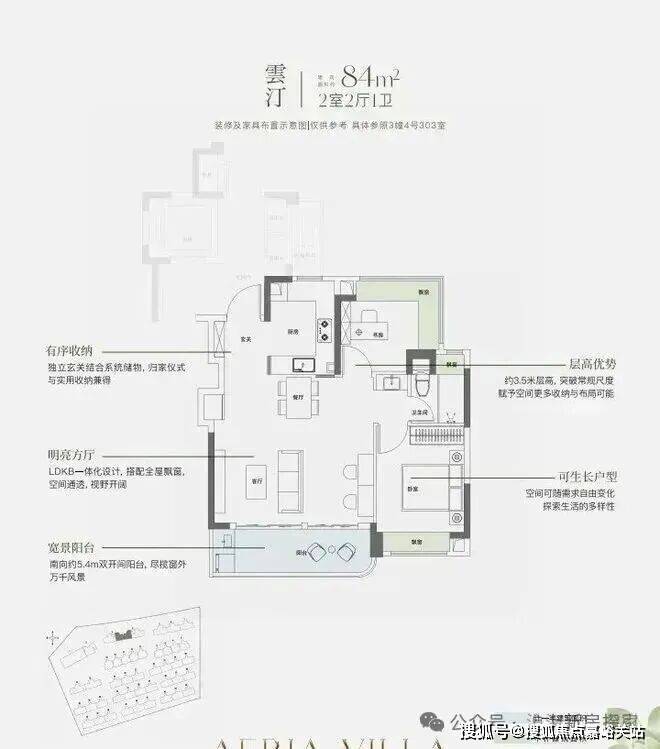 约9.8米南向面宽,配以超大尺度跑道式阳台,让室内外交融共生。