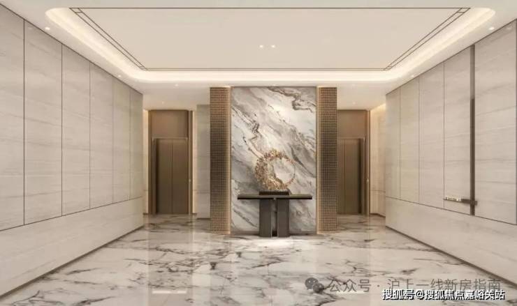 :挑高 6.8 米的入户大堂,地面采用 “水刀拼花” 工艺(图案为闵行 “黄浦江支流” 抽象造型),墙面悬挂上海本土艺术家创作的《闵行新貌》油画,大堂中央摆放定制款 “白玉兰造型” 艺术雕塑,营造 “回家即享艺术展” 的仪式感;