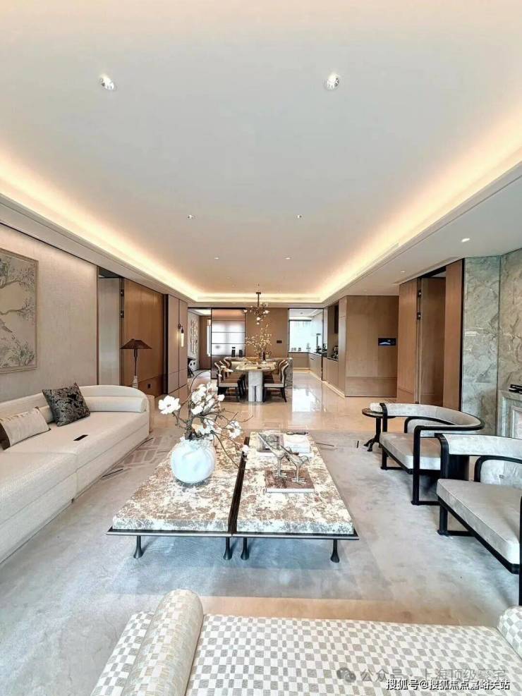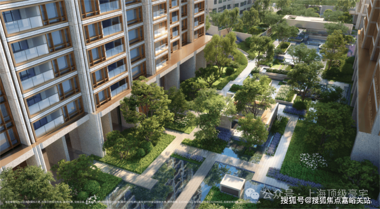 同时也得益于两个地块融合在一起形成了完整地块,项目打造了约160米超长中轴,约4000㎡中轴景观,约700㎡落玉水院、下沉庭院以及私属入户花园。