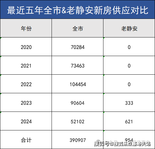 过去五年,全上海一共供应约39万套新房,位于老静安的仅954套,占总供应量的约0.24%,几近于无!