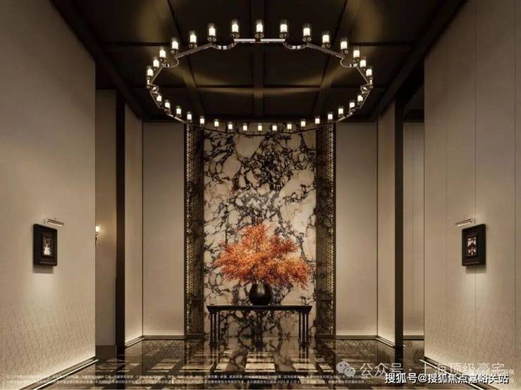 材料 选用 意大利石材,BVLGARI HOTEL大理石,铝型材塑型红, 四层金属网格 墙面以及 梧桐叶金属屏风 等, 打造独属老静安的记忆符号,高奢定制,市区豪宅调性拿捏!