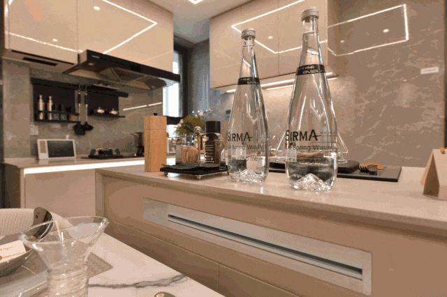 这其中也隐藏了诸多细节,比如全景一体化岩板背景墙。