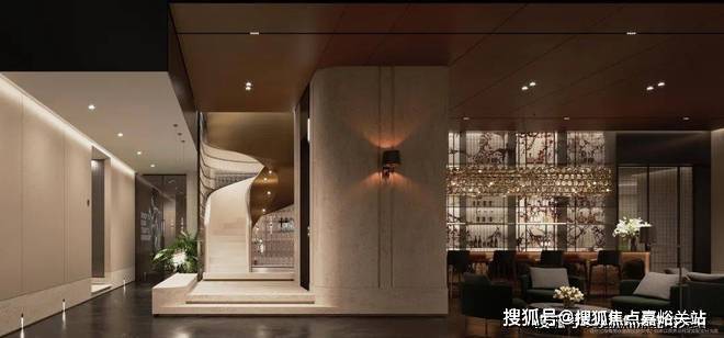 隐奢门庭 :社区大门以 古琦黑奢石 手工锻造弧形幕墙,将珠宝镶嵌工艺融入建筑肌理;