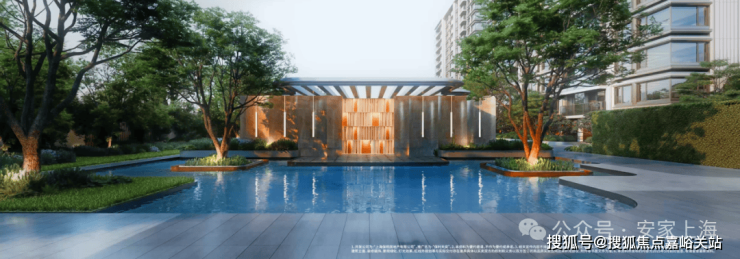 实景呈现的岛屿水院,作为保利天奕五座全球大师花园之一,在 银海枣树阵、下沉式庭院、镜面池畔卡座的呼应中,成为未来居者沉浸自然的惬意之地。温柔闲适的 落日廊吧,犹如身处海岛之畔,感受蓝调时刻的优雅情调。