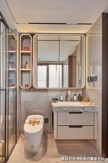 保利天奕特别关注到女性的生活需求,专门在卫生间配备了 科勒美颜龙头、美妆镜柜、美妆冰箱 ,采用 “顶+面双补光照明” ,能把“女本位”需求做到如此细致,目前没有几个项目能做到!