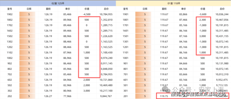 118和125m²的单元,边套同样价差微弱,也建议从上往下选;中间套高区有性价比,低区可捡漏。
