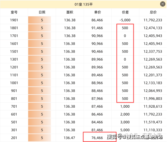 楼层价差:
