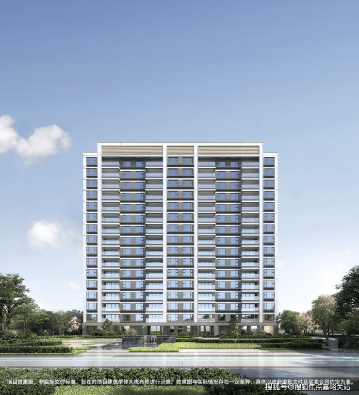 建筑 外立面采用现代简约的风格,搭配有序的横线线条,以米白色为主并搭配一定香槟金暖色调,通过分段式化解建筑尺度,丰富造型,整体时尚且更为耐看。