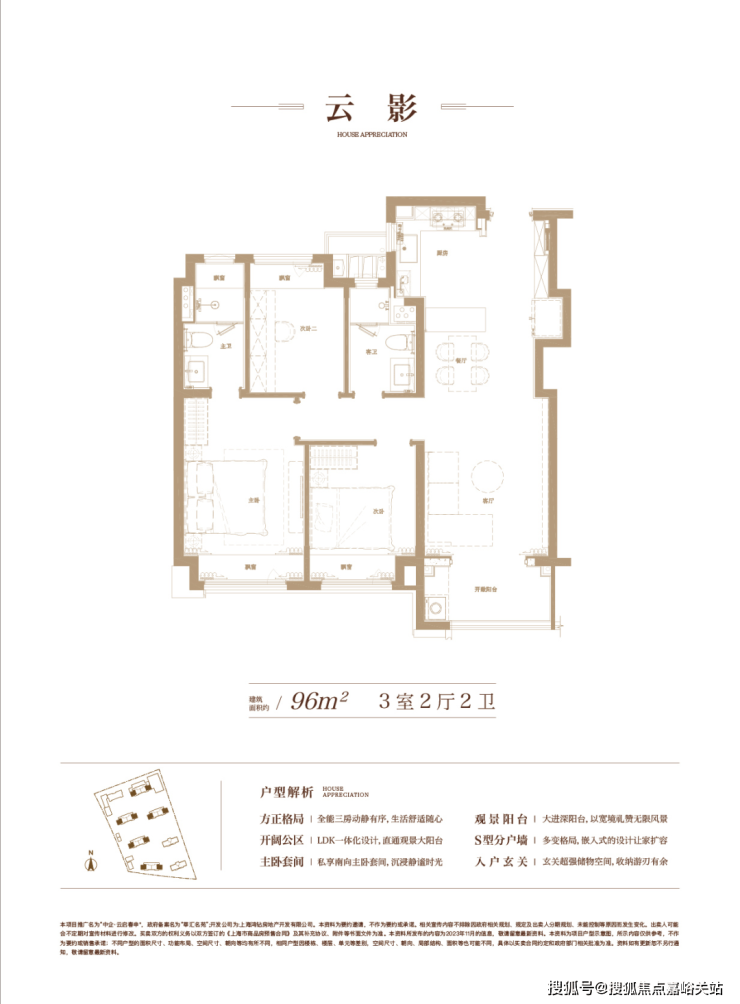 相当于96㎡三房户型的放大进阶版,四开间南向结合舒朗的方厅,大尺度的面宽,采光一流,主卧带衣帽间,女主人福音!