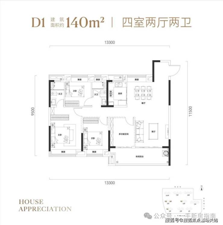 由9栋20-26层的高层组成,住宅容积率仅约2.5。在售建面约98㎡、110㎡、127㎡、140㎡四个户型,层高3米,远高于目前市面主流约2.8米。