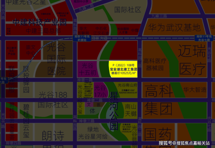 因此,在2022年12月16日的光谷土拍中,P(2022)108这宗 绝版地块 ,经历了9次竞拍,竞得总价 11.999亿元 ,溢价率 约3.45% ,楼面价 约10525元/㎡ ,最终幸运的落到了实力强劲的宝业集团手中, 瞬间引爆整个光谷地产圈!