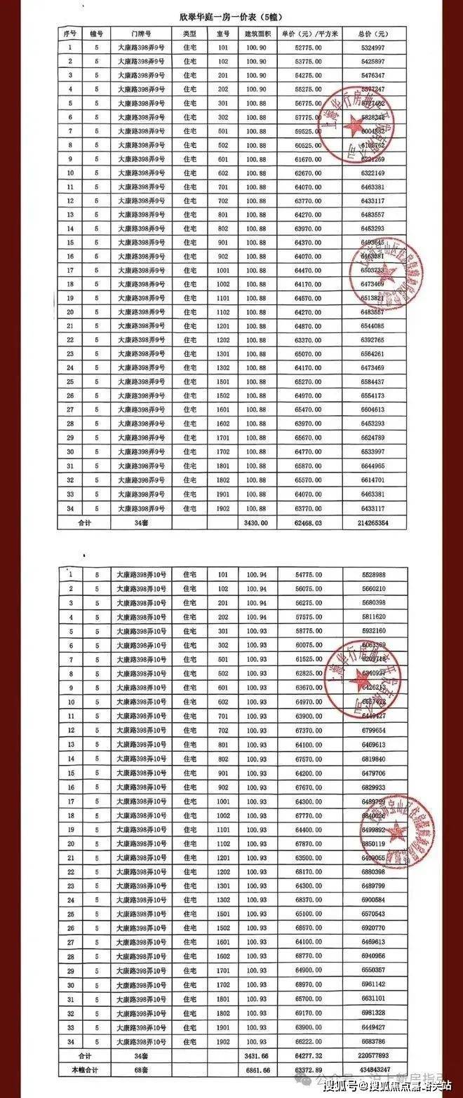 一房一价表如下: