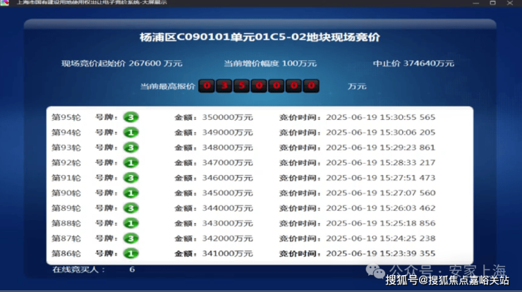 6月19日,2025年五批次土拍,保利发展经过95轮竞价摘得杨浦东外滩01C5-02地块(即保利外滩曜),成交总价350000万元,楼板价95530元/㎡,溢价率30.79%。