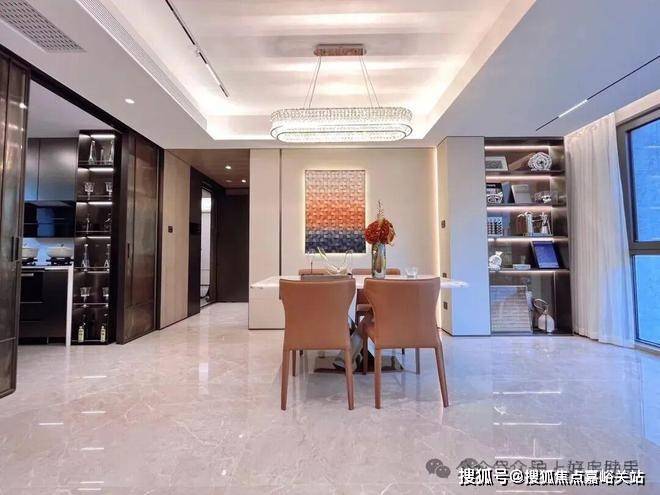 就拿餐厅而言,这个户型可以放下一个5-6人的圆桌,可以满足一大家子围坐大圆桌吃饭的需求。