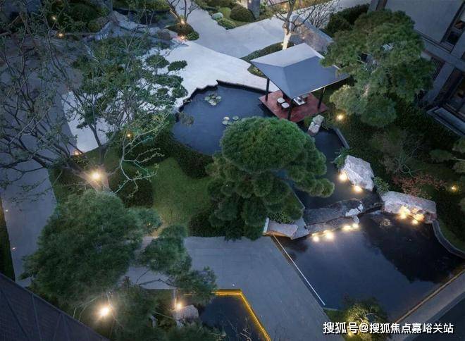 庭院的选材也极具讲究:太行山金景石堆叠成小山丘,岭南古桩铁冬青与中华原生乌桕树移栽而来,蕴含“聚财守业”的美好寓意。 细节之处,经得起推敲,让人越看越有味道。