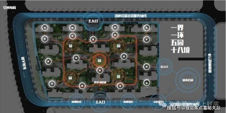 当然,【上实·望海】为了更好的与这自然生态相结合,在社区内打造了一界、一环、五园、十八境的景观。
