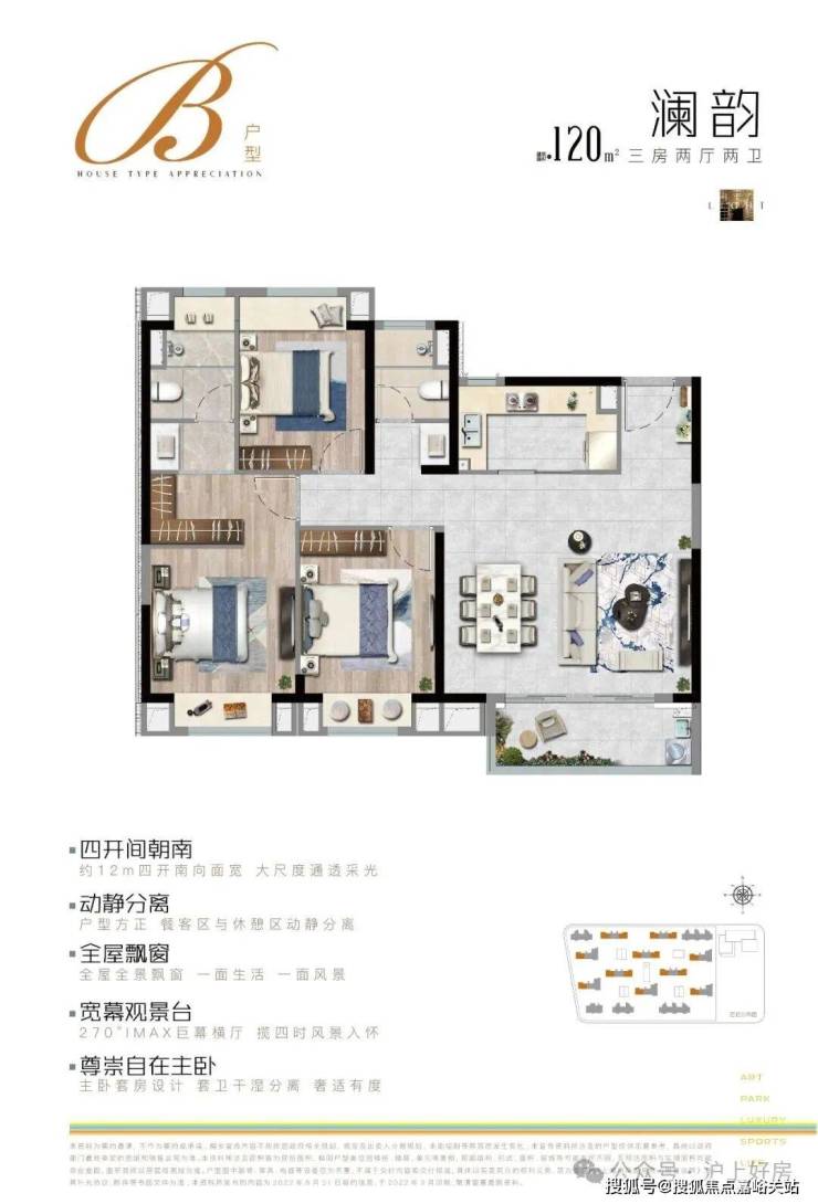 项目约100㎡3房2卫的户型把实用性做到了极致,总价虽低,但能满足业主从二人世界到二胎生活的全生命周期需求。