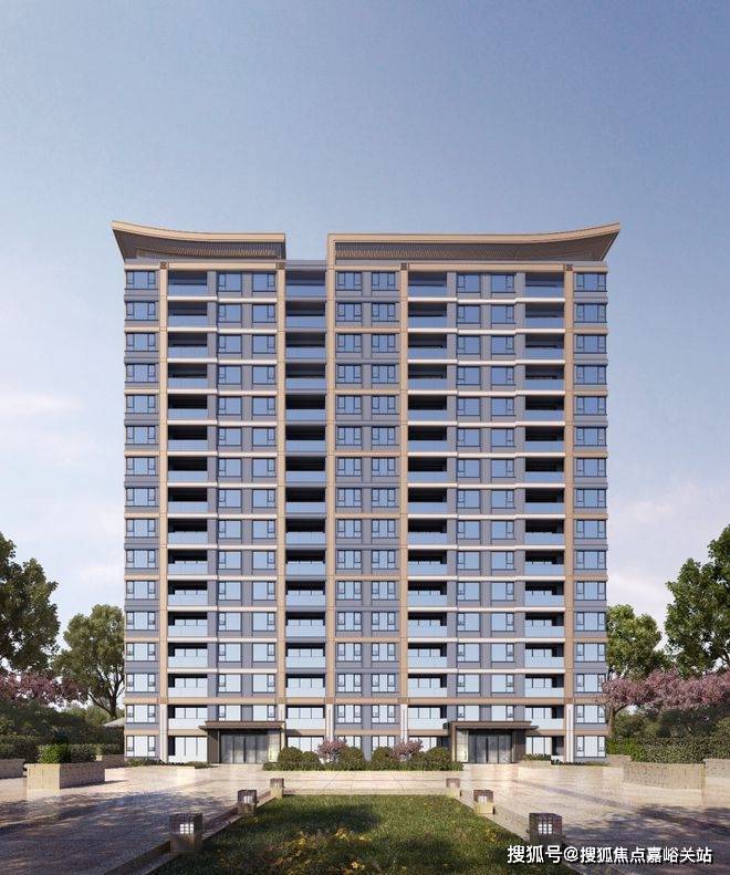 项目建筑外立面主色调为香槟金色与灰色相结合,单元入口部位使用蓝眼睛石材及香槟金色金属;更独特的是,项目将东方飞檐元素融入现代美学立面,形成不落俗套,气质清闲,典雅高贵的现代建筑形象,截取现代潮流元素的同时,亦不失东方大气恢弘之势。