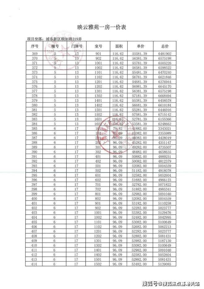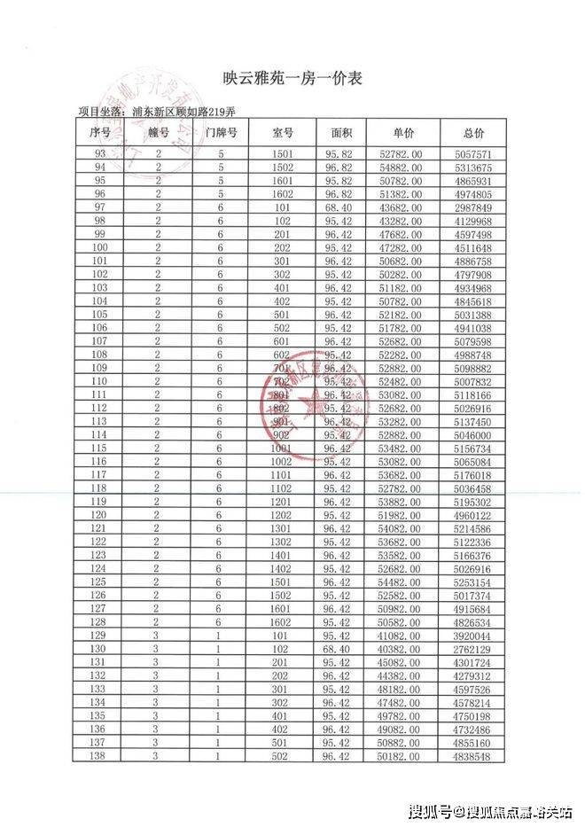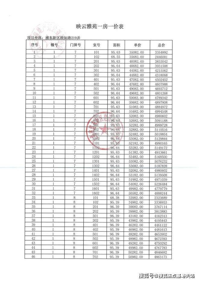 项目一房一价表▼