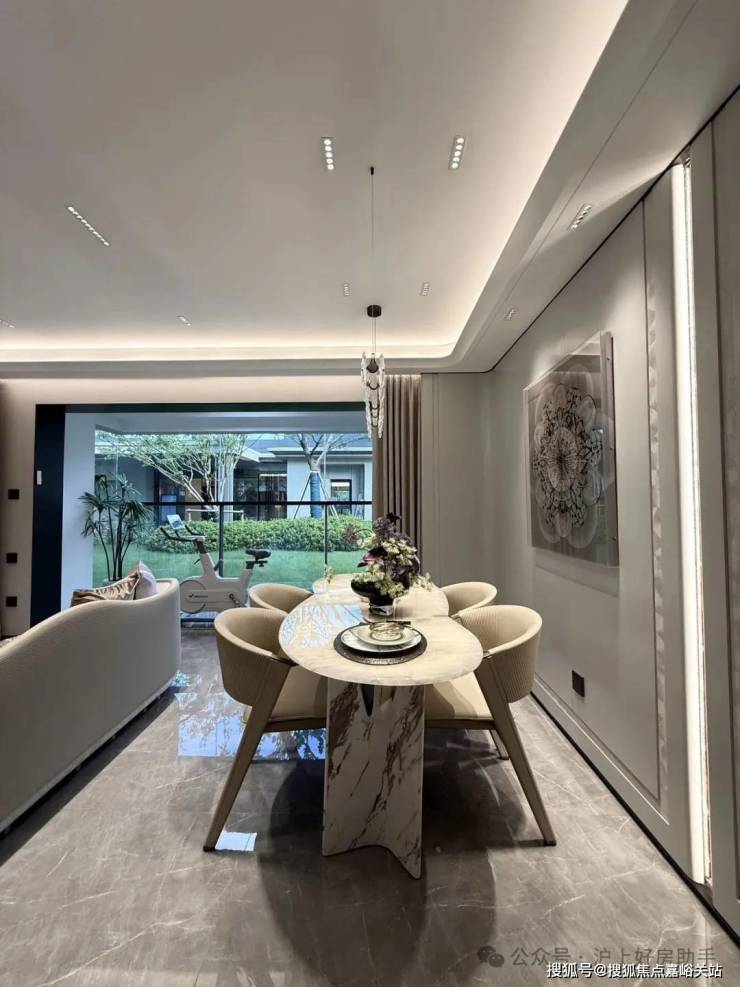 从步入社区大门开始,约70米超大尺度门庭、奢华酒店般的港湾式落客,就将仪式感便顶格拉满;星级酒店大堂,内部多处装置融合非遗技艺美学,生活在尊贵与艺术之间巧妙平衡;进入下沉式中庭花园,归家路上移步异景;单元入户入口延续奢华酒店质感,采用奢石与铝板叠加的奢华设计,碰撞法式圆润线条,仿佛艺术殿堂。