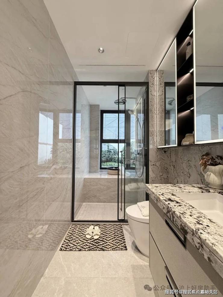 豪华的套房设计,北侧卫浴飘窗+南向床边双飘窗的设计,更是把这个空间的视野和收纳空间延展开来,尺度感真的很惊人。
