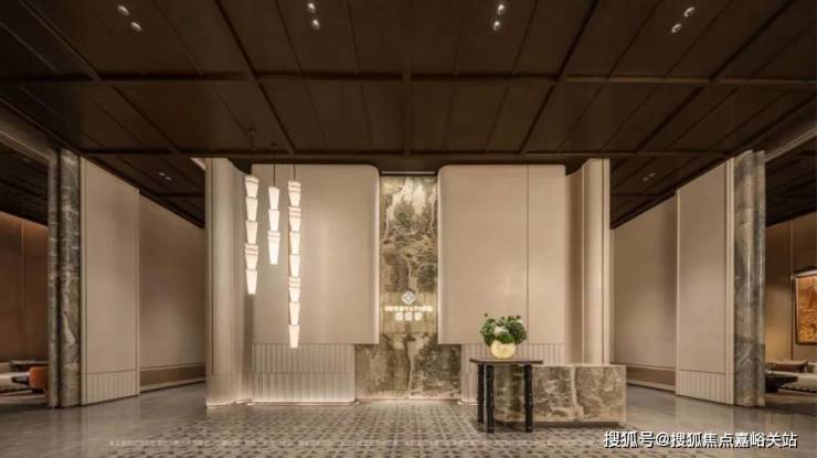 项目首层通过硬朗直线呼应柔和曲线勾勒,辅以温润石材与古铜色金属线条融合,打造东西方美学共融的艺术藏品。