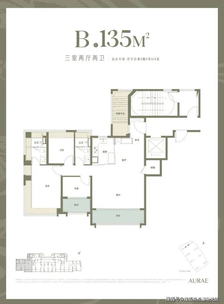 4、【新规后大三房】135平户型,三阳台,全飘窗,实得率约93%。