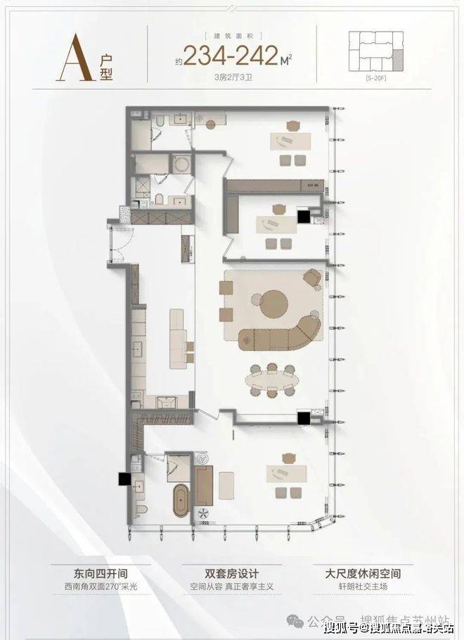 5️⃣户型优势:4.2米层高,全落地窗设计,多套房设计满足三代同堂