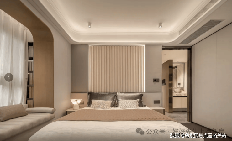 整个主卧尺度感是非常宽绰的,加上飘窗带来的视野延展以及收纳空间,居住舒适度拉满。