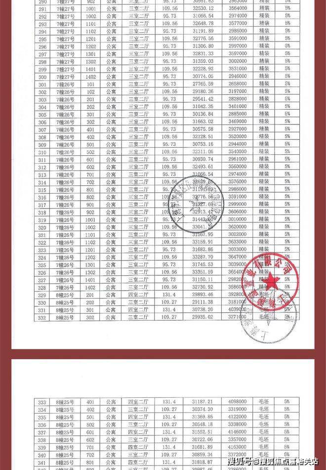项目一房一价表
