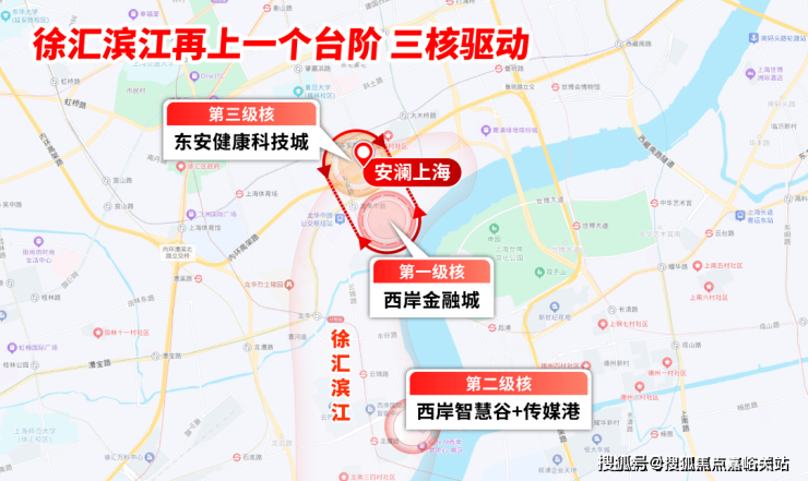 徐汇滨江最终将是三核驱动!犹记2014年,云锦东方售价约6.5万/㎡;如今徐滨两极成型约80%,房价已经20万+/㎡,如果三极全部建成,你觉得安澜上海会值多少钱?